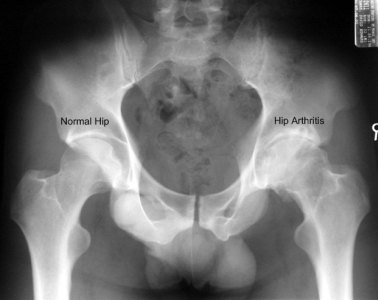 Standing x-rays of the hip joint will give a good assessment of remaining joint space and bone changes related to arthritis: